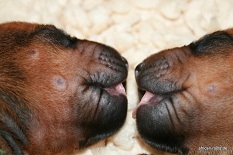 Nun ist fast schon die erste Woche rum und unsere Welpen haben stetig zugenommen und entwickeln sich prächtig, wir - besonders die Kinder - freuen uns schon so darauf, dass die Welpen die Augen öffnen. Das wird ungefähr Mitte nächster Woche passieren ...
