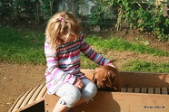 Endlich wieder etwas Sonne! Es ist so schön den Anyukas beim Toben zuzusehen, sie erkunden jetzt alles was sich im Welpenauslauf befindet, sehr beliebt ist der Sandhaufen, die Wippe wird aber auch genau untersucht und ausprobiert...
