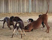 Akani ist immer mit vielen Hunden zusammen und wie man sieht hat er viel Spass dabei:)