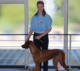 Am Sonntag auf der Bundessieger Ausstellung erhielt Lilli ein schönes sg und Luzie erlief sich in der gut besetzten Championklasse ein V2!