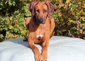 Akani ist ein wunderbarer Rüde, der immer und überall mit seiner Familie unterwegs ist, ob als Reitbegleithund oder mit auf der Jagd und im Büro.
