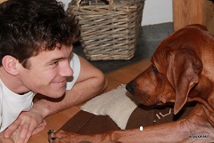 Unser Nachzuchtrüde Akani hat viele Hobbies: er begleitet seine Besitzer ins Büro, zum Reiten, ins Jagdrevier... er ist immer und überall dabei, aber seine Leidenschaft sind Kinder wie man sieht :)))