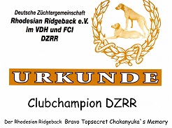 Heute hatten wir mal anstelle von Bildern Luzie's Urkunde zum Club Champion der DZRR in der Post!.