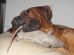ihr Lieblingsspielzeug ist eine Ratte,mal sehn' wie lange die noch lebt ...
