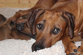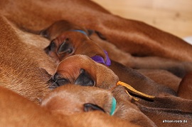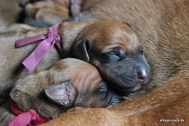 Die anderen Welpen - 4 Rüden und 6 Hündinnen - sind alle fit und haben schnell den Weg an die Milchbar gefunden, Lilli beobachtet das Ganze sehr interessiert und durfte auch schon mal einen Blick in die Kiste werfen. Danke, liebe Kathleen, dass Du auch diesmal wieder dabei warst!